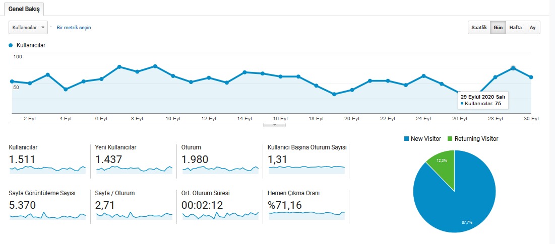 Her ay burada sitemizin İstatistiklerini olabildiğince paylaşmaya çalışacağım. Eylül Ayının İstatistikleri Aşağıdadır